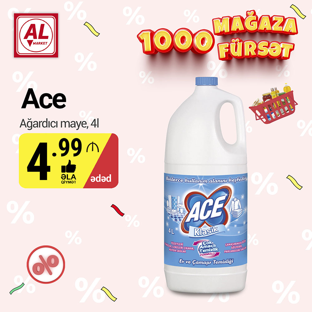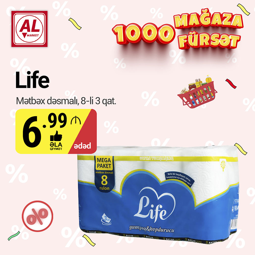 “Yüksək keyfiyyət, uyğun qiymət” sloqanını əsas tutan “Al Market” ailənizin ehtiyacları üçün lazım olan bütün məhsul çeşidliliyini daima sərfəli qiymətə təqdim edərək günlük xərclərinizi azaldmağa dəstək olur.