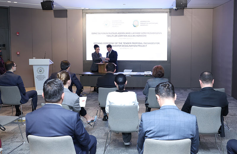 Növbəti mərhələdə layihə üzrə iddiaçı şirkətlərin təqdim etdiyi texniki və maliyyə təklifləri qiymətləndiriləcək və bunun əsasında müsabiqənin qalibi müəyyən olunacaq. Müsabiqə qalibi ilə dövlət-özəl tərəfdaşlığı müqaviləsi bağlanacaq. Dəniz suyunun duzsuzlaşdırılması yolu ilə içməli su istehsalı layihəsinin suyun keyfiyyəti, infrastrukturun vəziyyəti, ətraf mühit kimi məsələlər nəzərə alınmaqla Sumqayıt şəhərində icra edilməsi nəzərdə tutulur. Əhalinin və iqtisadiyyatın ehtiyacları, ölkənin su proqnozlarının nəticələrinə əsasən növbəti illərdə içməli suya olan tələbatın artacağı nəzərə alınaraq layihənin istehsal gücü illik 100 milyon m3 olacaq. Layihənin əsas məqsədi Bakı şəhəri və Abşeron yarımadasının içməli suya artan tələbatı təmin etməkdir.Dəniz suyunun duzsuzlaşdırılması yolu ilə içməli su istehsalı zavodu layihəsinin reallaşdırılması üçün keçirilən müsabiqə üzrə təkliflər zərfinin açılması mərasimi keçirilib.