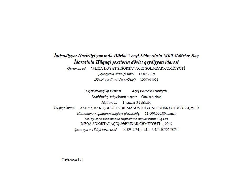 Azərbaycanda həyat sığorta şirkətləri arasında ən dinamik inkişaf edən “Meqa Həyat Sığorta” 2019-cu ilin sentyabr ayında təsis edilib və 2021-ci ildə AMB-nin verdiyi həyat sığortası xidmətləri göstərməyə icazə verən lisenziya əsasında fəaliyyətə başlayıb.