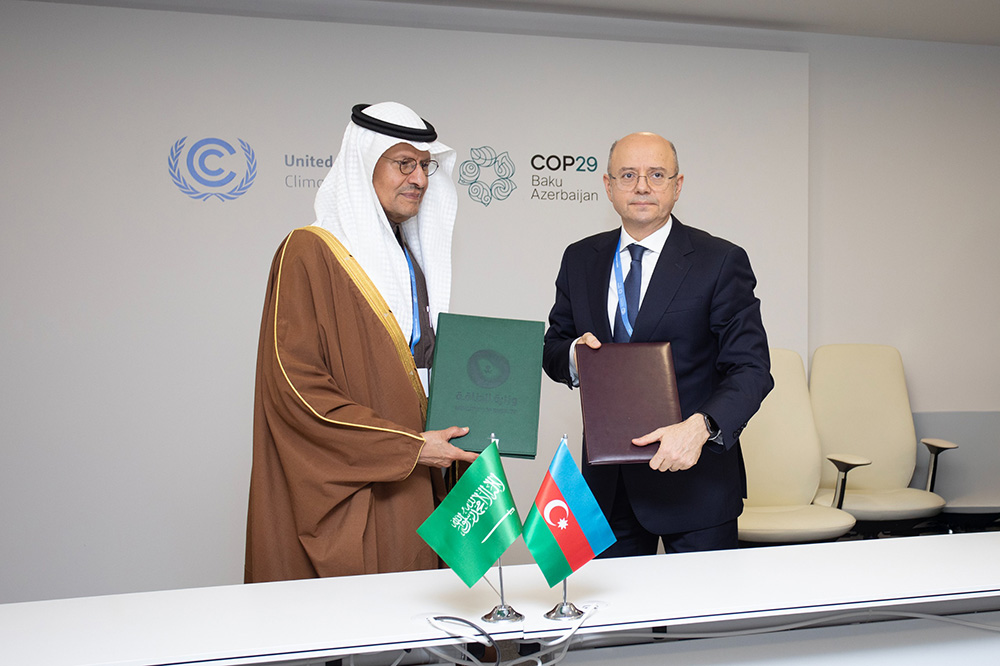 COP29 tədbiri çərçivəsində “Azərbaycan Respublikası, Qazaxıstan Respublikası və Özbəkistan Respublikası arasında yaşıl enerjinin inkişafı və ötürülməsi layihəsi”ndə Səudiyyə Ərəbistanı Krallığının iştirakını təmin edən və Azərbaycanla “yaşıl enerji” əməkdaşlığını genişləndirən bir neçə sənəd imzalanıb.