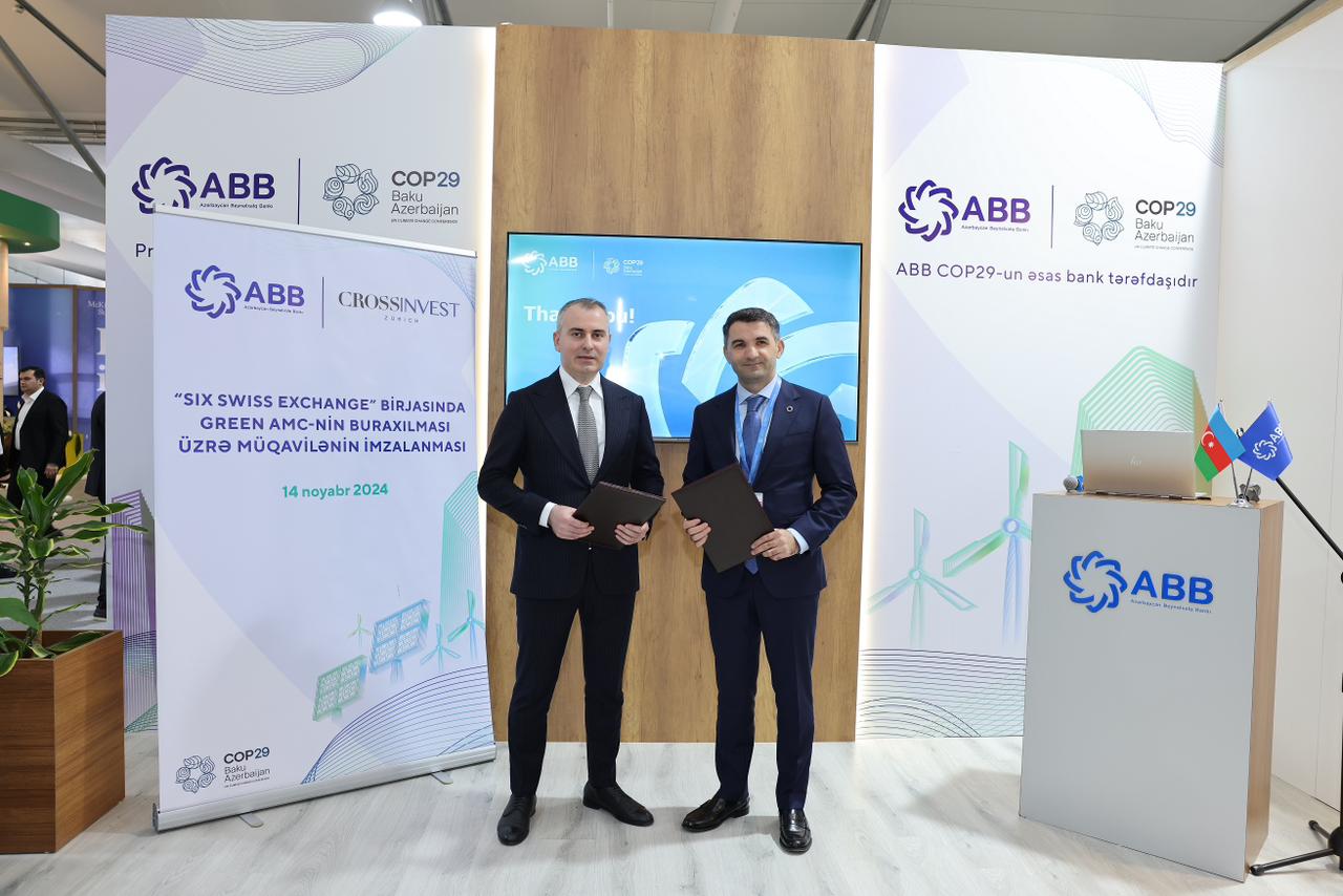 ABB üçün İsveçrə Birjasında (SIX Swiss Exchange) 10 milyon ABŞ dolları məbləğində, ortalama AA- investisiya reytinqinə malik yaşıl sertifikatlardan ibarət Aktiv İdarəolunan Sertifikat (Green AMC) yerləşdiriləcək.ABB və İsveçrənin Crossinvest Şirkətlər Qrupu arasında COP29 çərçivəsində müqavilə imzalanıb.