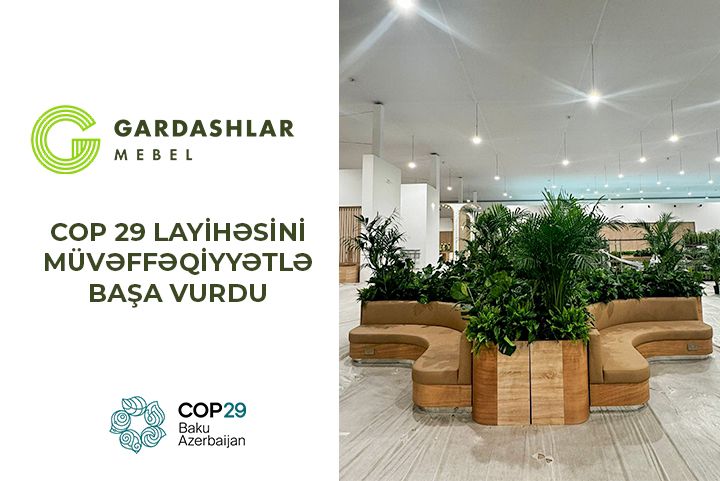 Gardashlar Mebel-in COP 29 Mərkəzinin mebel layihəsində qürurlu rolu. Əli Mirzəyev: Qlobal statuslu bir layihədə Azərbaycan istehsalçısı olaraq iştirak etmək bizim üçün əzəmətli bir təcrübə oldu. Komandamız hər bir mebel parçasının yüksək standartlara uyğun olması üçün ən kiçik detallara belə diqqət yetirərək yorulmadan çalışdı.(®) Gardashlar Mebel COP 29 Mərkəzinin mebel layihəsini uğurla başa vurduğunu elan edib.