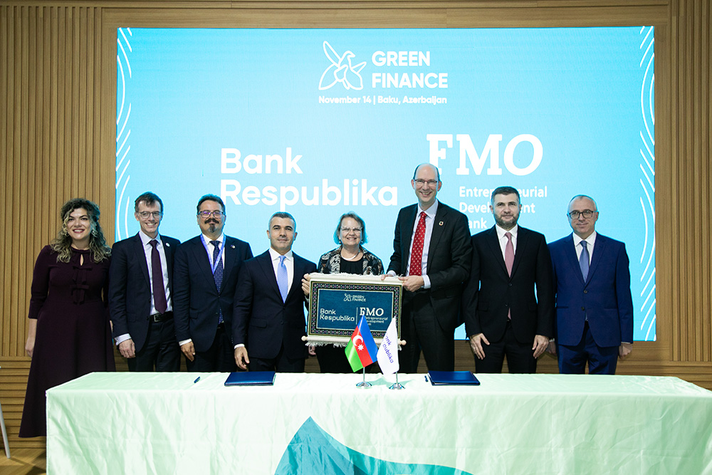 Bank Respublika Niderland İnkişaş Bankından yaşıl kredit cəlb etdiBMT-nin İqlim Dəyişmələri üzrə Çərçivə Konvensiyasının Tərəflər Konfransının 29-cu sessiyası (COP29) çərçivəsində ölkənin ən böyük kommersiya banklarından biri olan Bank Respublika və Niderland İnkişaf Bankı (FMO) arasında Azərbaycanda yaşıl layihələrin maliyyələşdirilməsi üzrə böyük kredit sazişi imzalanıb.