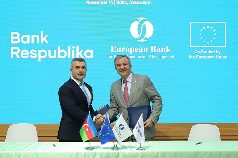 Bank Respublika və EBRD COP29 çərçivəsində yaşıl kredit sazişi imzalayıb. Beynəlxalq maliyyə qurumu Bank Respublika üçün 3 illik müddətə 7,5 milyon ABŞ dolları məbləğində sintetik kredit ayıracaq. Bank "yaşıl" kredit götürən sahibkarlara keşbek verəcək!Azərbaycanın ən böyük kommersiya banklarından biri olan Bank Respublika və Avropa Yenidənqurma və İnkişaf Bankı (EBRD), BMT-nin İqlim Dəyişmələri üzrə Çərçivə Konvensiyasının Tərəflər Konfransının 29-cu sessiyası (COP29) çərçivəsində Azərbaycanda yaşıl layihələrin maliyyələşdirilməsi üçün kredit sazişi imzalayıblar.