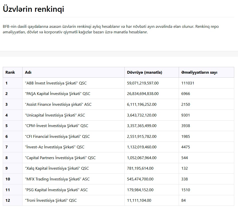 "ABB İnvest", "PAŞA Kapital" və "Assist Finance" ilk 3 yeri tutublar