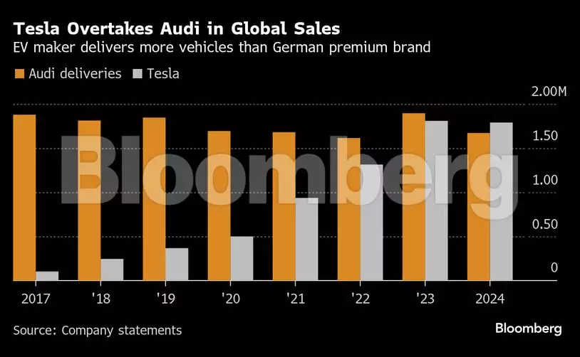 Tesla şirkəti gözləniləndən daha az avtomobil satmasına baxmayaraq, keçən il Almaniyanın ən qiymətli premium avtomobil markalarından birini - Audi-ni geridə qoyub. Alman avtomobil istehsalçısının satışları Almaniya, Çin və Şimali Amerika da daxil olmaqla bir neçə əsas bazarda azalıb.Tesla keçən il 1,79 milyon ədəd avtomobil sataraq 1,67 milyon ədəd avtomobil satan Audi-ni geridə qoyub.