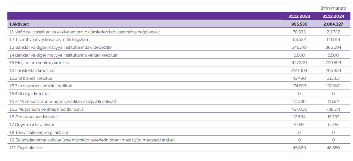 Azərbaycanda daha bir bankın böyüklüyü 2 milyard manat səviyyəsini keçib