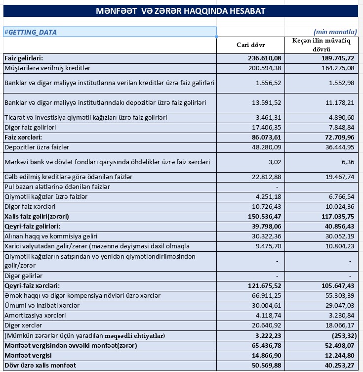 - Bankın xalis mənfəəti 26% artaraq 50,57 milyon manat təşkil edib.