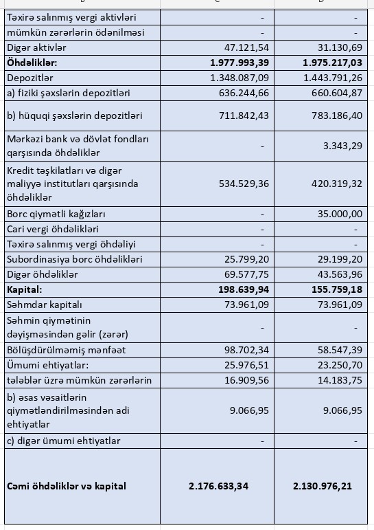 - Bankın xalis əməliyyat mənfəəti 31%-dən çox artaraq 68,66 milyon manat olub.