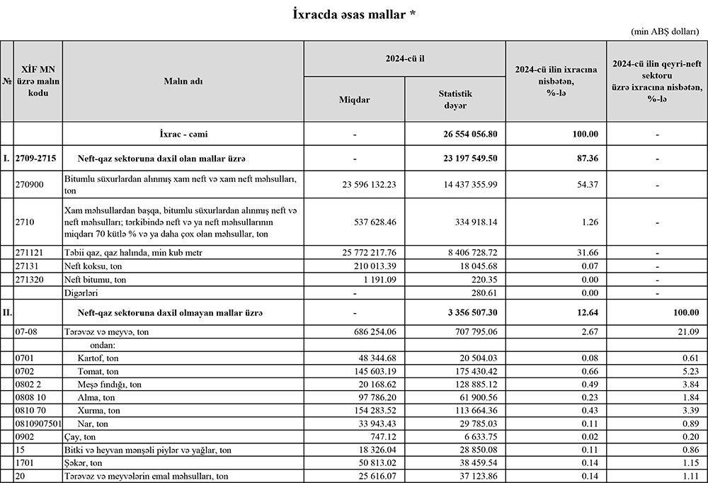 2024-cü ildə Azərbaycanın ən çox ixrac və idxal etdiyi mal qruplarının adları və məbləğləri məlum olub.