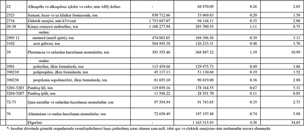 Marja.az Dövlət Gömrük Komitəsinə istinadən təqdim edir.