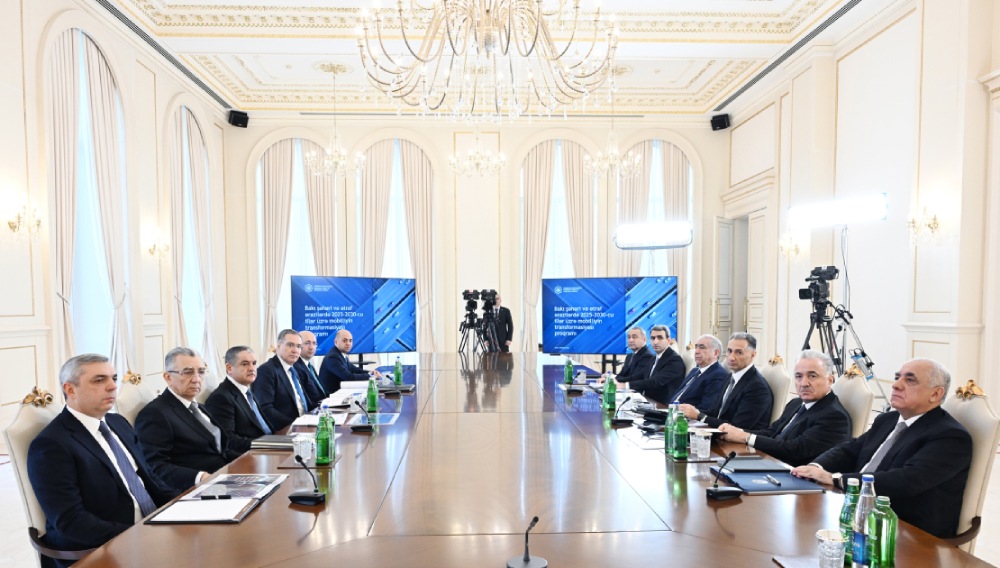 Biz nəqliyyat məsələlərini həmişə diqqət mərkəzində saxlamışıq və son 15 il ərzində Bakı şəhərində bir çox böyük layihələr icra edildi, yeni metro stansiyaları istifadəyə verildi, yol qovşaqları, tunellər, körpülər inşa edildi, yeni yollar salındı. Əgər biz bu işləri görməsəydik, bu gün, ümumiyyətlə, Bakı şəhərində nəqliyyat iflic vəziyyətinə düşərdi. Amma yenə də görürük ki, növbəti böyük bir proqramın qəbul olunmasında böyük fayda olacaq. Bu məqsədlə bir müddət bundan əvvəl Rəqəmsal İnkişaf və Nəqliyyat Nazirliyinə dövlət proqramının hazırlanmasına dair müvafiq göstərişlər vermişəm və bir neçə ay ərzində bu proqram üzərində iş aparılıb. Bu gün biz bu məsələləri müzakirə edəcəyik və lazım olan qərarları verəcəyik.