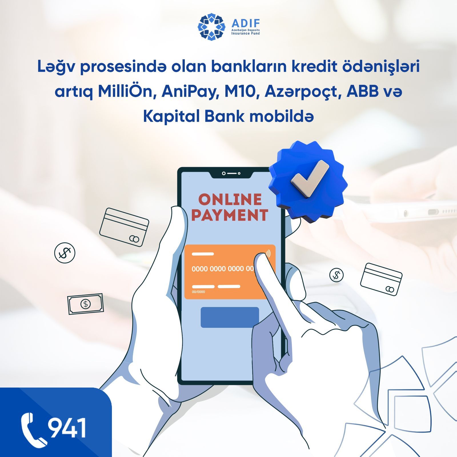 Ləğv prosesində olan bankların kredit ödənişləri artıq MilliÖn, AniPay, M10, Azərpoçt, ABB və Birbank-da