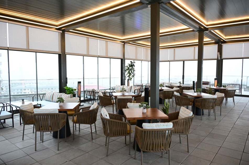 Müasir iaşə məkanlarının yaradıldığı hoteldə “Lobby lounge”, kafe, açıq və qapalı restoranlar fəaliyyət göstərəcək.