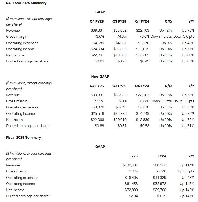 Nvidia tam 2025-ci maliyyə il üzrə 72,9 milyard dollar xalis mənfəət əldə edib ki, bu da əvvəlki hesabat ili ilə müqayisədə 145% çoxdur.