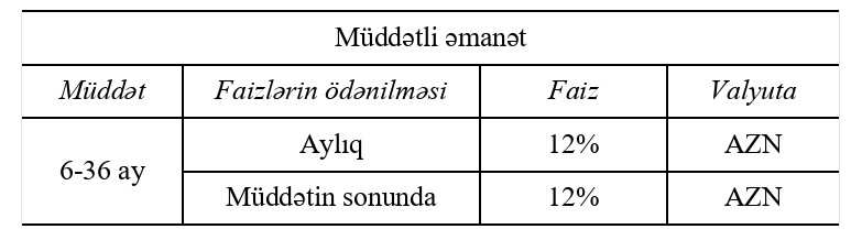 -Əmanət məhsulunun növü – “Müddətli” əmanət;