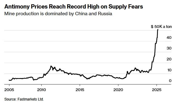 Həm müdafiə şirkətləri, həm də yüksək texnologiya şirkətləri bu metalı əldə etmək üçün rəqabət aparırlar. Çatışmazlığa qismən Çinin keçən avqust ayında kritik mineralların ixracına məhdudiyyətlər qoyması səbəb olub. 2024-cü il dekabrın əvvəlində Çin ABŞ-a stibium tədarükünü qadağan edib.