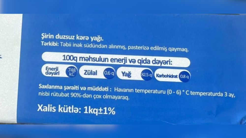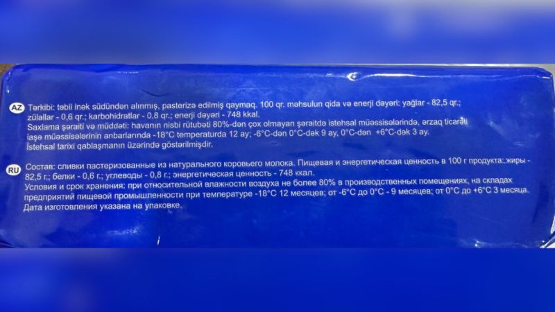 Qeyd edək ki, aşkarlanan uyğunsuzluqlar qida məhsulunun təhlükəsizlik göstəriciləri ilə bağlı olmasa da, istehsalçı tərəfindən qanunvericiliyə zidd şəkildə istehlakçıların aldadılması və hüquqlarının pozulması hesab olunur. Belə ki, kərə yağı məhsullarının üzərində təbii inək südündən alınmış, pasterizə edilmiş qaymaqdan istifadə edilməsi bəyan edilsə də, yoxlama zamanı məhsulun faktiki tərkibinə bitki yağının qatılması halı aşkar edilib.