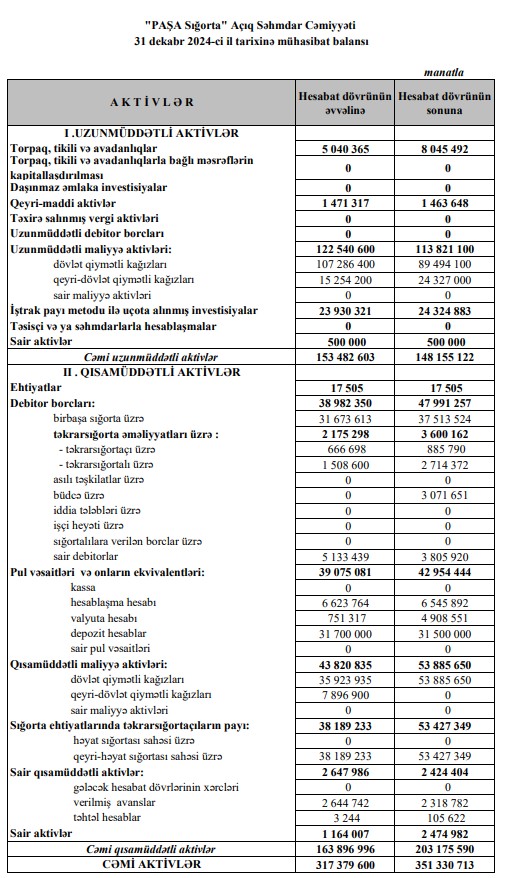 "PAŞA Sığorta" 2024-cü il üzrə qazancını açıqladı