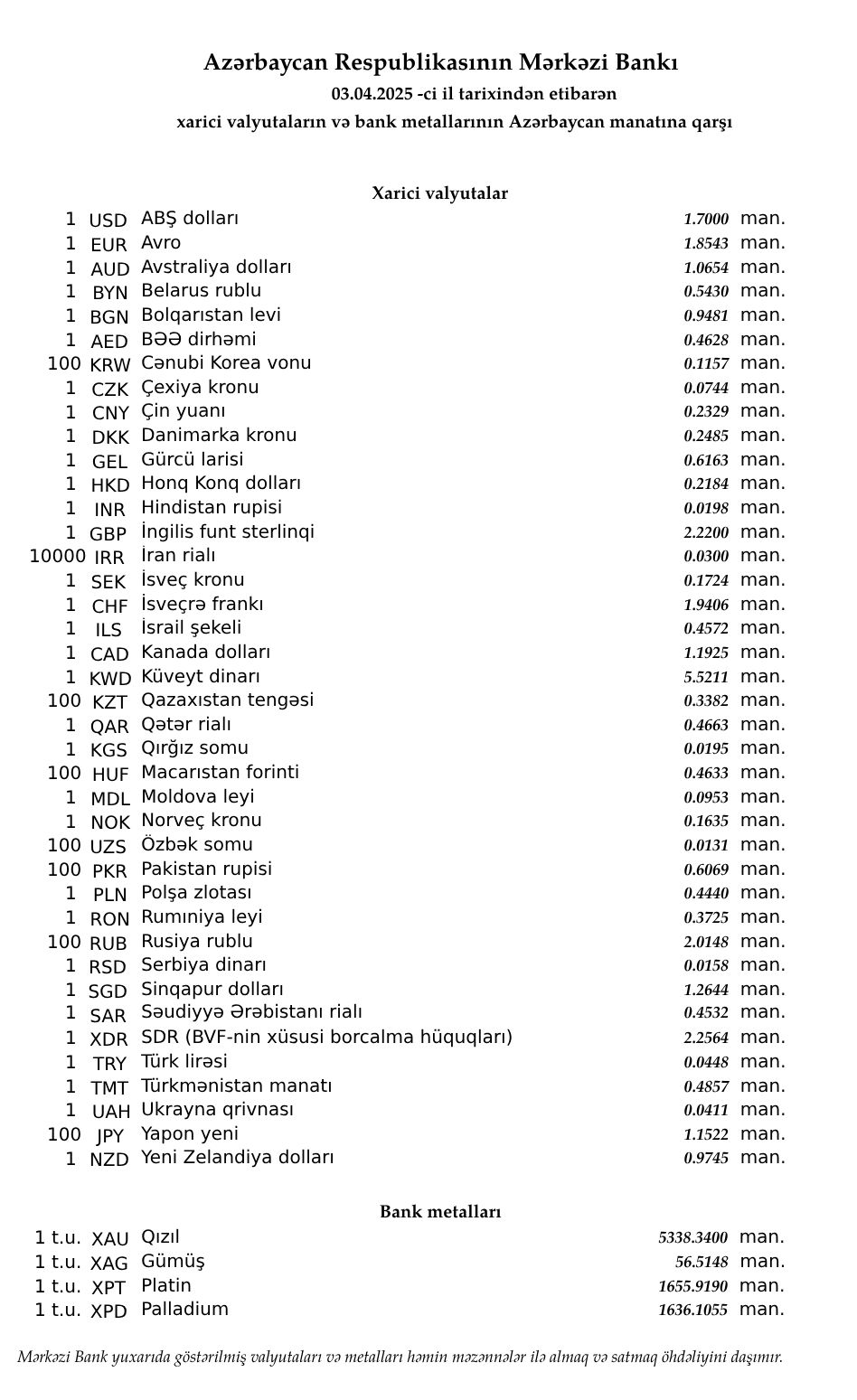 Dolların bazar ertəsi üçün rəsmi məzənnəsi müəyyən olunub