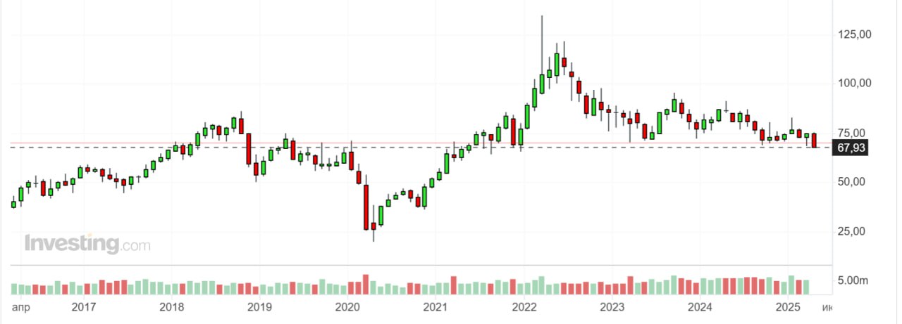 Londonun ICE birjasının ticarət məlumatlarına əsasən, Brent markalı neftin iyun fyuçerslərinin qiyməti 3,27% ucuzlaşaraq bir barel üçün 67,85 dollar olub. Sonuncu dəfə neftin bir barreli 68 dollardan aşağı satılıb, təxminən 3,5 il əvvəl, 2 dekabr 2021-ci ildə.