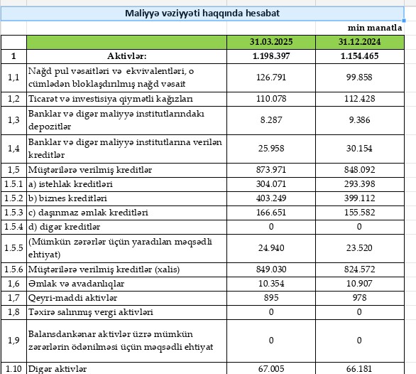 "Rabitəbank"ın cəmi cəmi kredit portfeli (müştərilərə verilmiş kreditlər) 2024-cü ilin sonu ilə müqayisədə 2025-ci ilin ilk rübündə 25 milyon 879 min manat və ya 3% artaraq 31 mart 2025-ci il tarixində 873 milyon 971 min manat təşkil edib.