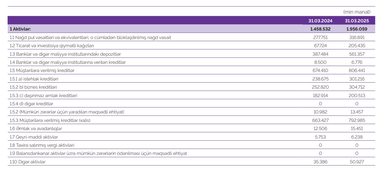 Qeyd edilib ki, dövlət bankı Azər Türk Bankın 01 aprel 2025-ci il tarixinə aktivləri ötən ilin müvafiq dövrü ilə müqayisədə 35%-dək artaraq, 1,95 milyard manat səviyyəsində olmuşdur.