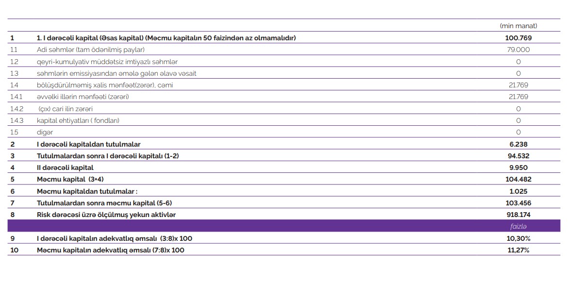 Bankın məcmu kapitalının həcmi 20% artaraq, 103,5 milyon manat olmuşdur.