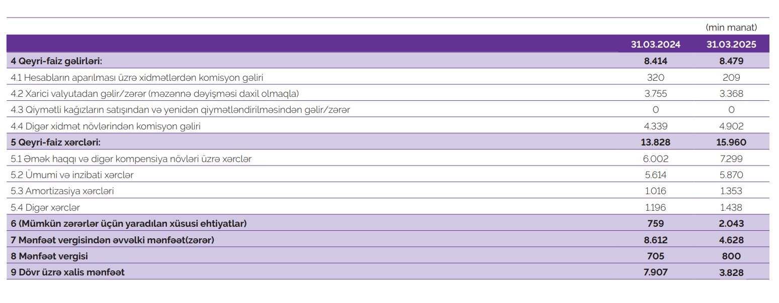 Cari ilin birinci rübü ərzində Bankın gəlirləri 41 milyon manat, xərcləri 36,9 milyon manat olmuşdur. 2025-ci ilin ilk üç ayında Azər Türk Bank 3 milyon 828 min manat həcmində xalis mənfəət əldə etmişdir.