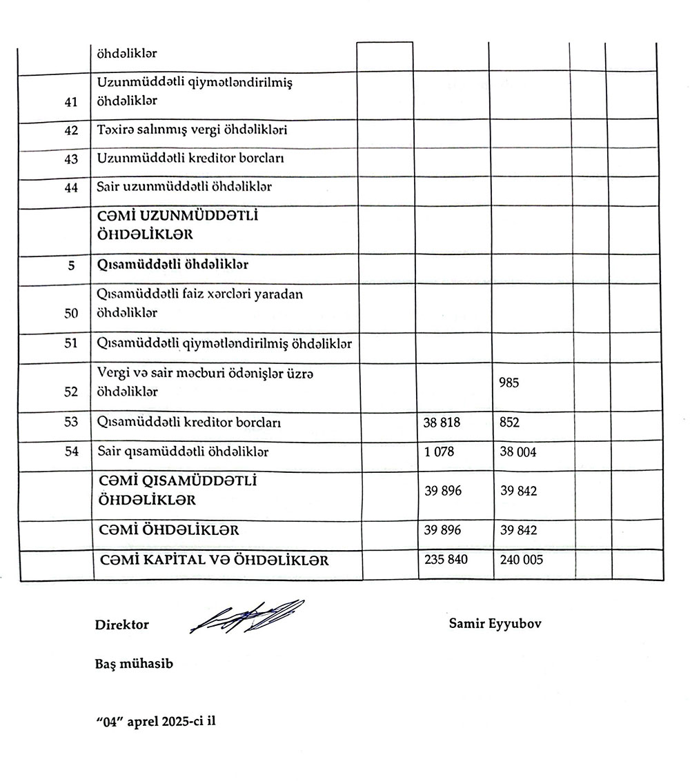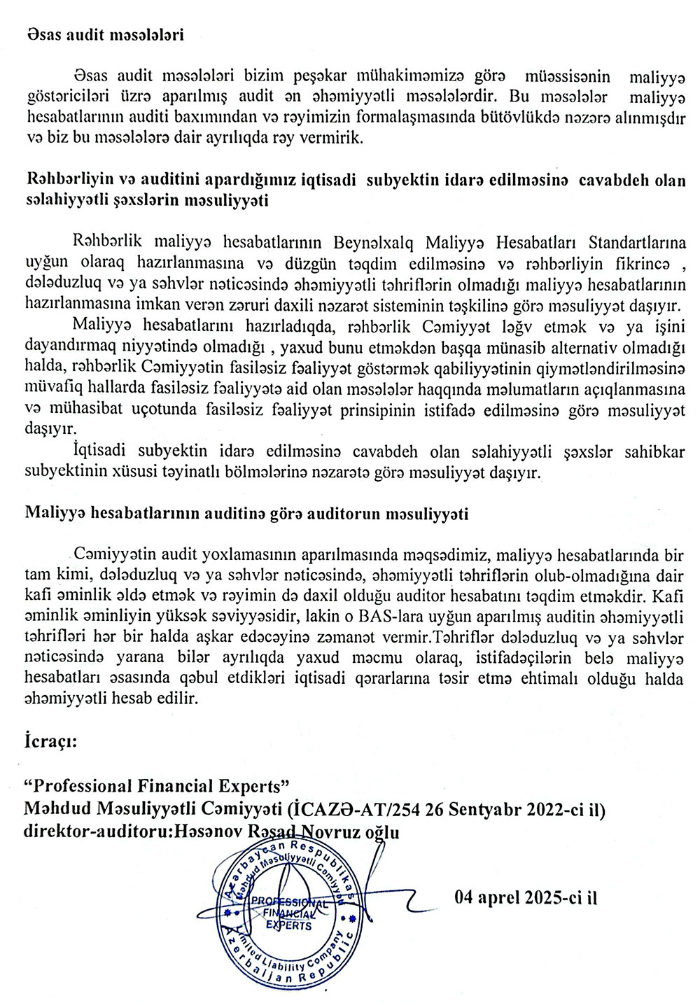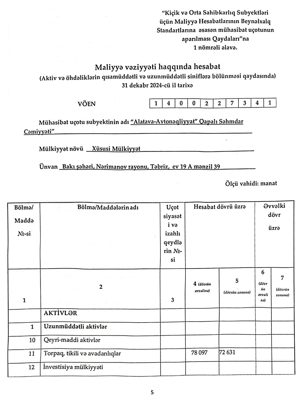 "Alatava-Avtonəqliyyat" QSC-nin 31 dekabr 2024-cü il tarixində başa çatan il üzrə maliyyə hesabatları.