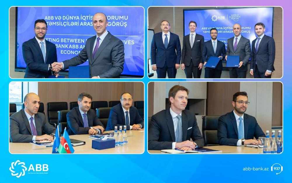 Dünya İqtisadi Forumunun nümayəndələri Azərbaycana səfər çərçivəsində ABB-nin Baş ofisində də görüş keçiriblər. Onlara Bankın fəaliyyəti, strateji hədəfləri, son illər reallaşdırdığı uğurlu layihələr haqqında məlumat verilib. Gələcək əməkdaşlıq perspektivləri müzakirə edilib. ABB-nin Forumla tərəfdaşlıqdan faydalanmaq imkanları, dünyadakı digər böyük bankların bu sahədə təcrübələri və s. mövzular ətrafında müzakirələr aparılıb. Görüş zamanı ABB-nin Dünya İqtisadi Forumu ilə tərəfdaşlığına dair sənəd də imzalanıb.
