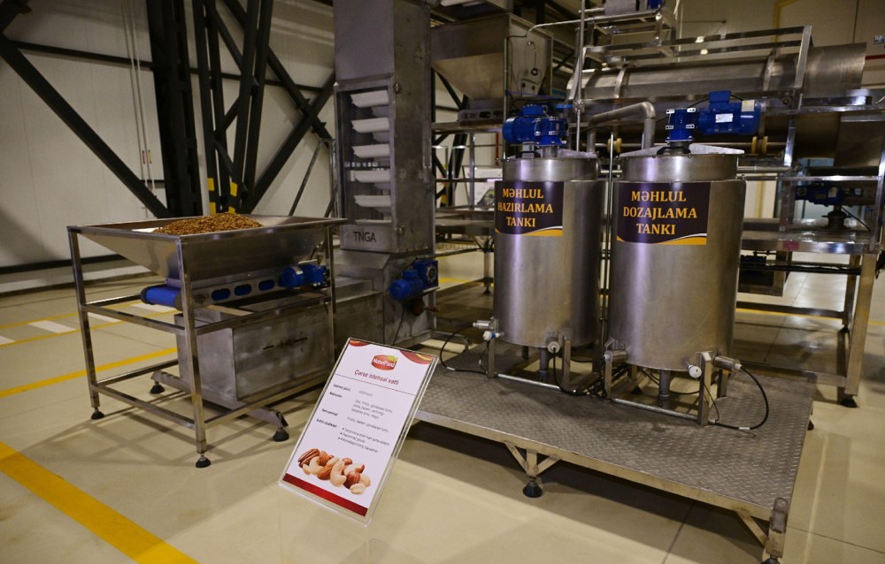 İllik istehsal həcmi 9600 ton olan zavodda dünyanın aparıcı ölkələrinin müasir avadanlıqları quraşdırılıb. İstehsalatda istifadə ediləcək günəbaxan, badam, fındıq kimi məhsullar yerli xammal hesabına təmin olunacaq.