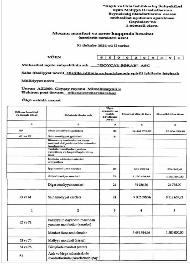 "Göyçay Şərab"ın gəliri və mənfəəti artıb - 16,5 MİLYON MANAT GƏLİR, 2 MİLYONA YAXIN MƏNFƏƏT