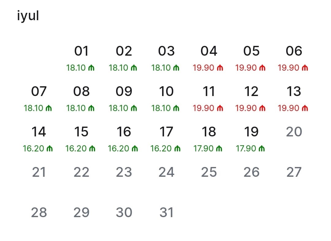 İyul ayı üçün Bakı–Qazax–Bakı marşrutu üzrə hərəkət edən qatarlarına olan qiymətlər: