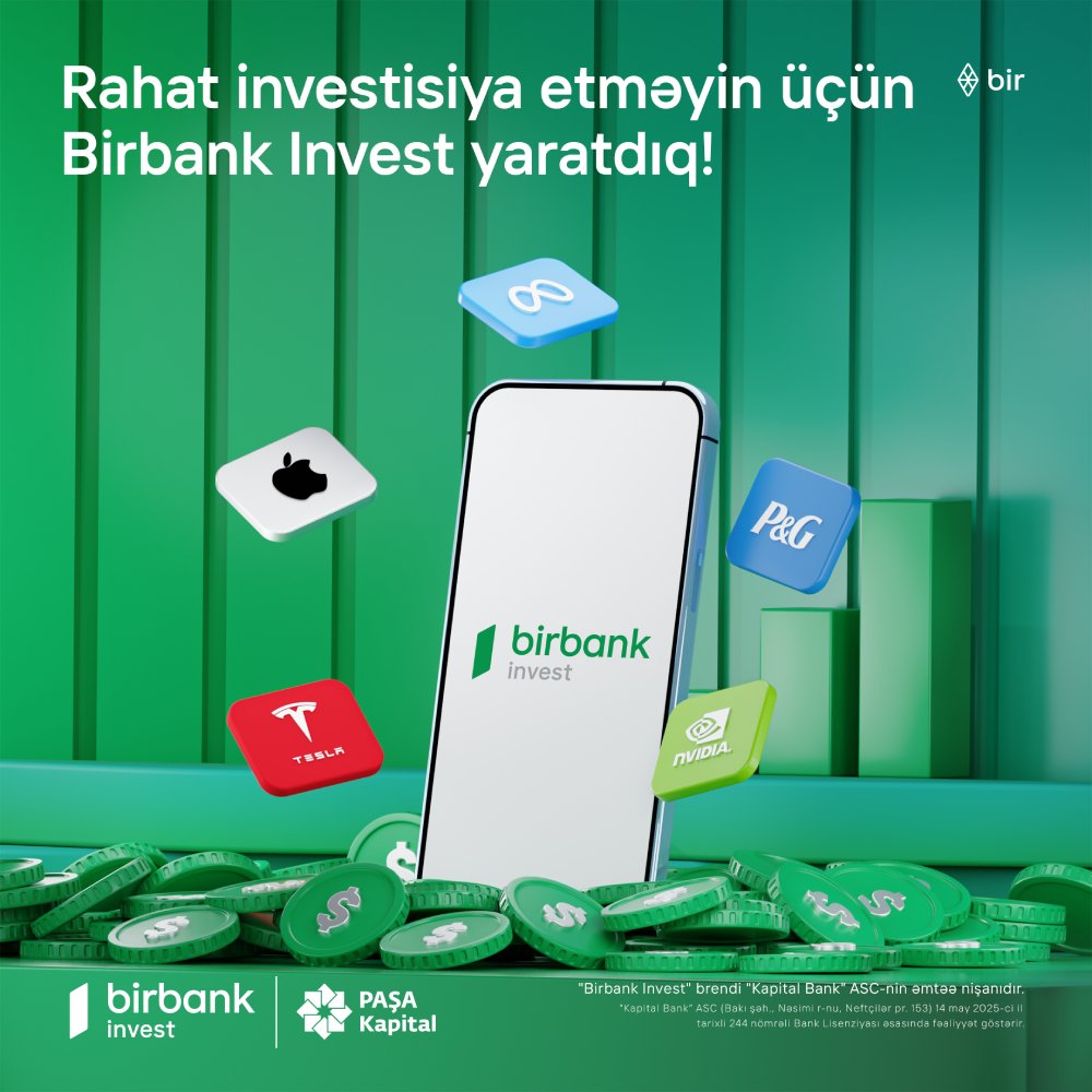 Qeyd edək ki, Birbank brendinin təqdim etdiyi Birbank Invest, Azərbaycanda bank tərəfindən “PAŞA Kapital İnvestisiya Şirkəti” QSC ilə birgə təqdim olunan ilk müstəqil investisiya tətbiqidir. Tətbiq həm investisiya sahəsində ilk addım atanlar, həm də təcrübəli investorlar üçün nəzərdə tutulub. İstifadəçilər bu innovativ platforma sayəsində sərvətlərini asanlıqla idarə edə, investisiya imkanlarından effektiv şəkildə faydalana bilərlər.