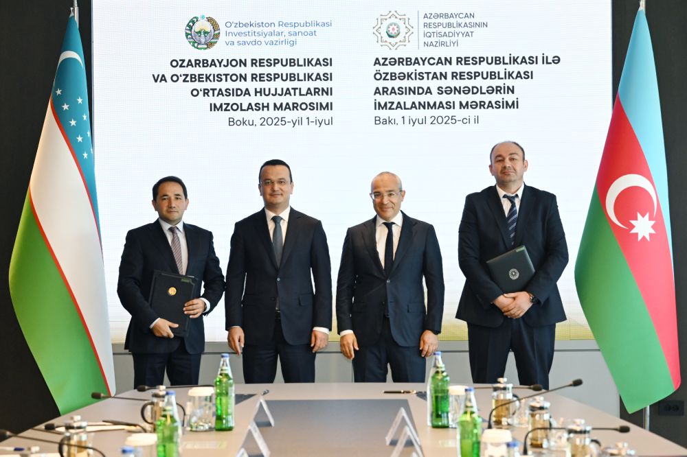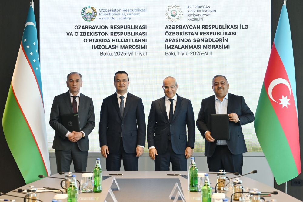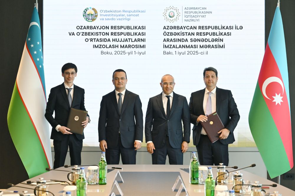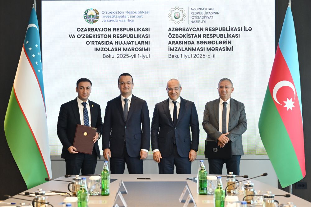 İqtisadiyyat Nazirliyində keçirilmiş tədbirdə Özbəkistanla sənaye, tikinti, istehsal, infrastrukturun təkmilləşdirilməsi kimi sahələrdə əməkdaşlığa dair sənədlər imzalanıb.Azərbaycanda səfərdə olan Özbəkistan biznes nümayəndələri ilə görüş çərçivəsində iqtisadi tərəfdaşlığın şaxələndirilməsi istiqamətində bir sıra sənədlər imzalanıb. Bununla əlaqədar İqtisadiyyat Nazirliyində keçirilən tədbirdə iqtisadiyyat naziri Mikayıl Cabbarov, Özbəkistanın investisiya, sənaye və ticarət naziri Laziz Kudratov və hər iki ölkənin işgüzar dairələrinin nümayəndələri iştirak ediblər.