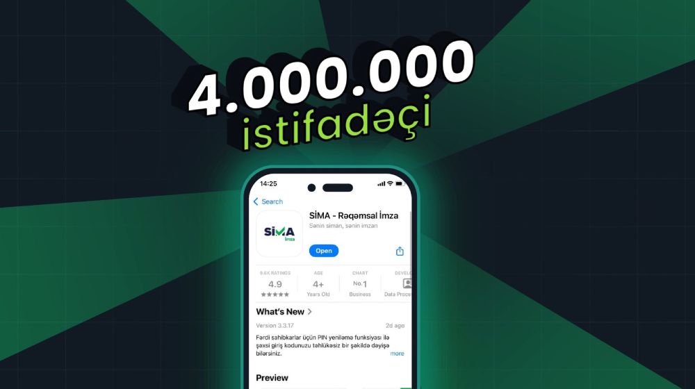 2022-ci ildə “AzInTelecom” tərəfindən yaradılımış SİMA yeni nəsil rəqəmsal imza ölkənin rəqəmsal inkişafı tarixində mühüm layihə hesab edilir. Mobil tətbiq formasında işləyən imza vətəndaşlar üçün tam ödənişsiz şəkildə təqdim olunur. Qısa müddətdə vətəndaşlar arasında tanınan “SİMA İmza” tətbiqi üç il ərzində bir çox sektorda xidmətlərin rəqəmsallaşmasına təminat yaradıb. Artıq mobil tətbiqin yüklənilmə sayı 4 milyonu ötüb. Dövlət və özəl sektorda xidmətlərin elektronlaşmasında istifadə olunan “SİMA İmza”nın tərəfdaş sayı 80-nə çatıb. Mobil Notariat, E-gov, MİDA, “mygov”, “digital.login”, ƏMAS, “Smart Customs”, Elektron Məhkəmə, İnternet Vergi İdarəsi və s. kimi dövlət elektron platformalarına “SİMA İmza” ilə giriş (təsdiqləmə) prosesləri təmin edilib. Xüsusilə də 12 avqust 2024-cü ildə Əmək Məcəlləsinə edilmiş müvafiq dəyişiklikdən (əmək müqavilələrinin elektron formata keçirilməsi) sonra “SİMA İmza” bu prosesdə mühüm rəqəmsal alətə çevrilib. Belə ki, indiyədək ölkə üzrə elektron əmək müqavilələrinin 98 faizi “SİMA İmza” ilə imzalanıb. “digital.login” vahid giriş sistemi üzərindən dövlət və özəl xidmətlərə daxilolmaların isə 35 faizi “SİMA İmza” ilə həyata keçirilib. Bu isə onu göstərir ki, “SİMA İmza” elektron xidmətlərə əlçatanlıq yanaşmasında məkan və zaman amillərini aradan qaldırıb, insanların gündəlik həyat fəaliyyətini asanlaşdırıb. SİMA rəqəmsal imza sistemi sayəsində insanlar artıq bir çox xidmətlərə fiziki iştirak etmədən, onlayn şəkildə çıxış əldə edə bilirlər. Ölkənin ən ucqar yerlərində yaşayan vətəndaşlar da xidmət mərkəzlərinə getmədən elektron imza əldə edərək öz işlərini məsafədən həll edə bilirlər.