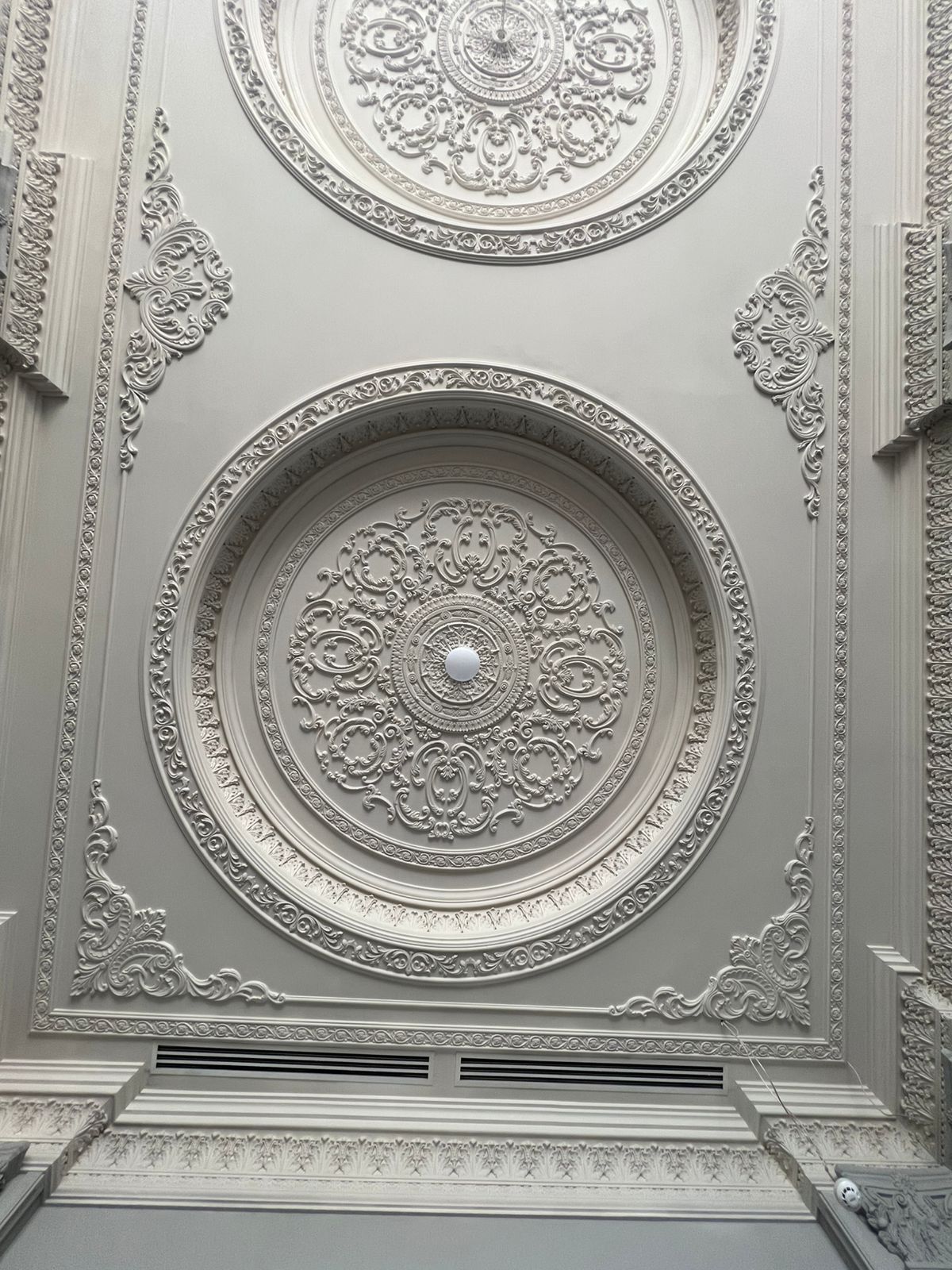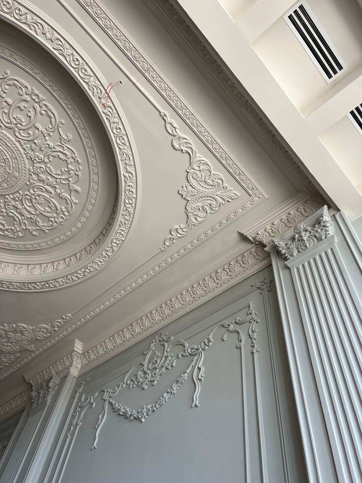 Ən yadda qalan layihələrdən biri, Bakının mərkəzində yerləşən tarixi bir malikanədə tavan dekorunun bərpası oldu. Bu layihəyə son dərəcə diqqətli və məsuliyyətli yanaşdıq. Məqsəd hər şeyi yenidən yaratmaq deyil, əksinə, mövcud çatlar və nahamarlıqları qorumaqla, məkanın orijinal ruhunu və dövrün atmosferini yaşatmaq idi.