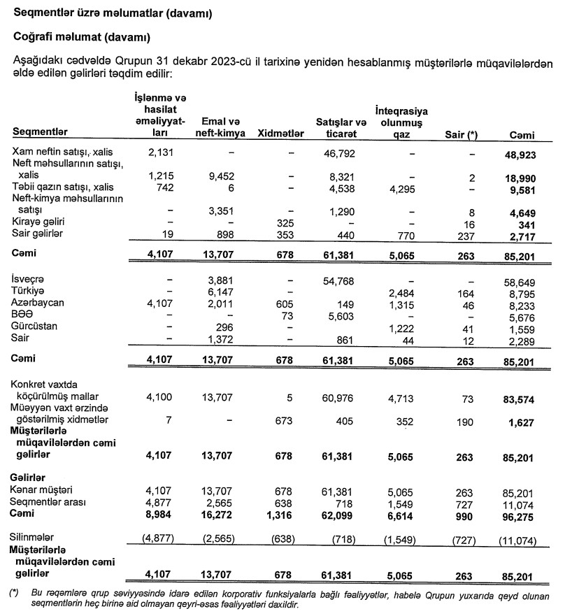 SOCAR gəlirinin 64 faizini İsveçrədə əldə edib2024-cü ildə SOCAR 84 milyard 689 milyon manat əsas əməliyyat gəlirlərinin 63,6%-ni və ya 53 milyard 868 milyon manatını İsveçrədə əldə edib.