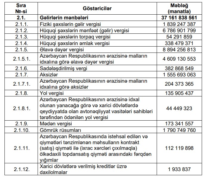 Marja xəbər verir ki, Azərbaycan Respublikasının 2024-cü il dövlət büdcəsinin icrası gəlirlər 37 milyard 161 milyon 838,6 min manat, xərclər 37 milyard 713 milyon 661,1 min manat məbləğində olmaqla təsdiq edilib.