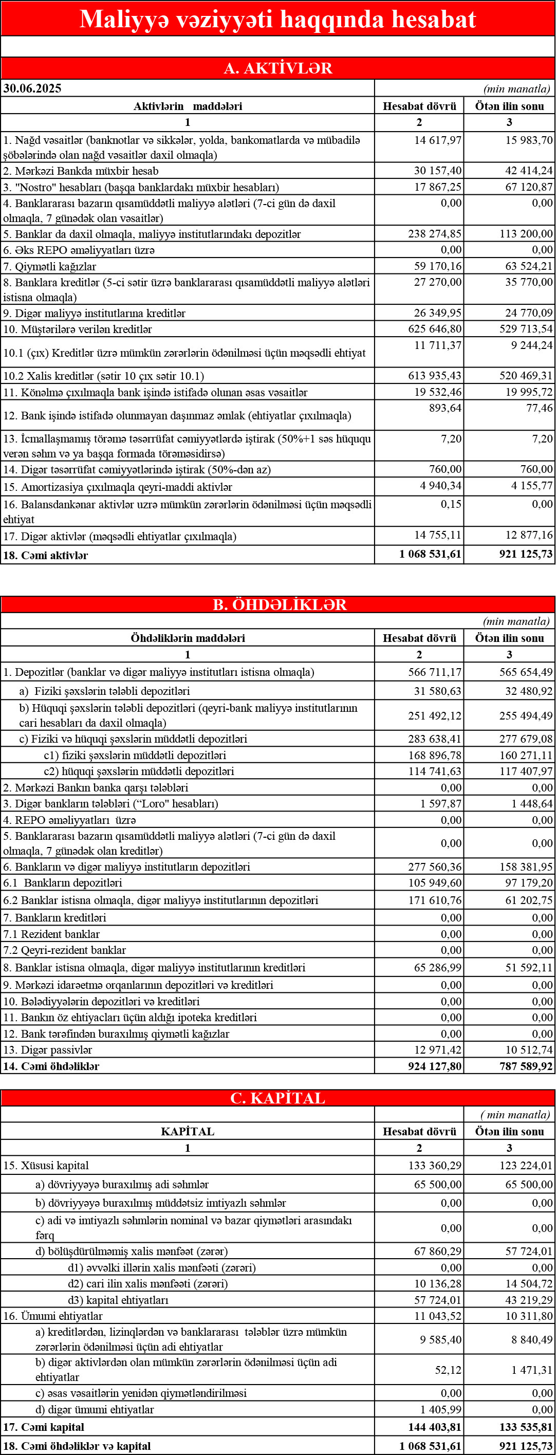 AKTİVLƏRİNİN MƏBLƏĞİ 1 MİLYARD MANATDAN ÇOXDUR