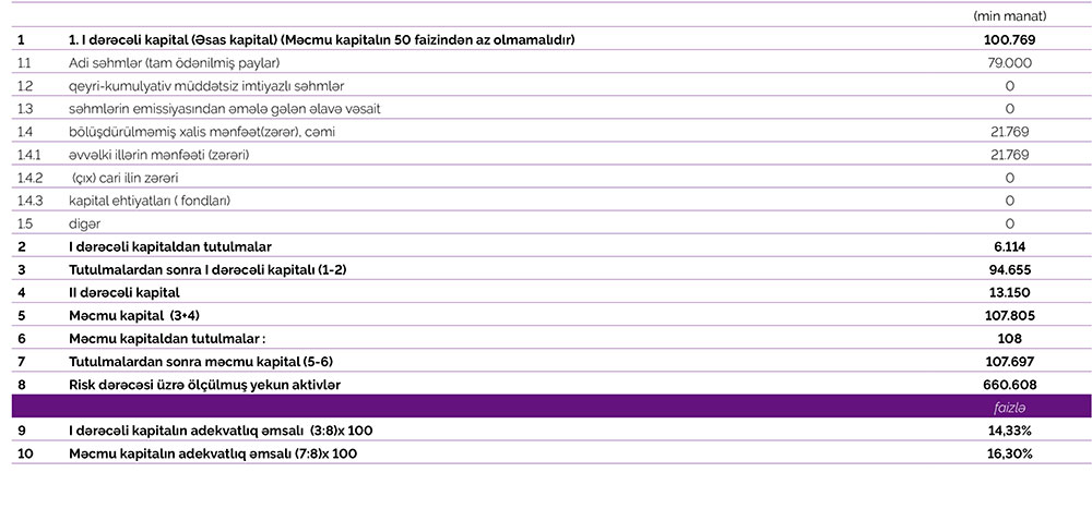 Bankın məcmu kapitalının həcmi 18,2% artaraq, 107,7 milyon manat olmuşdur.