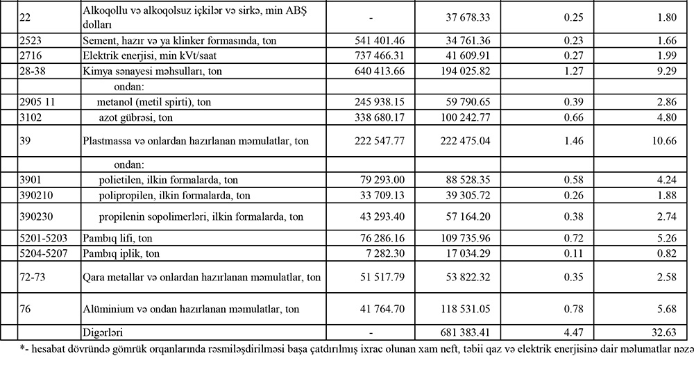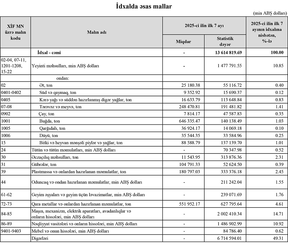 2025-cü ilin yanvar-iyul aylarında (7 ayda) Azərbaycanın ən çox ixrac və idxal etdiyi mallar.