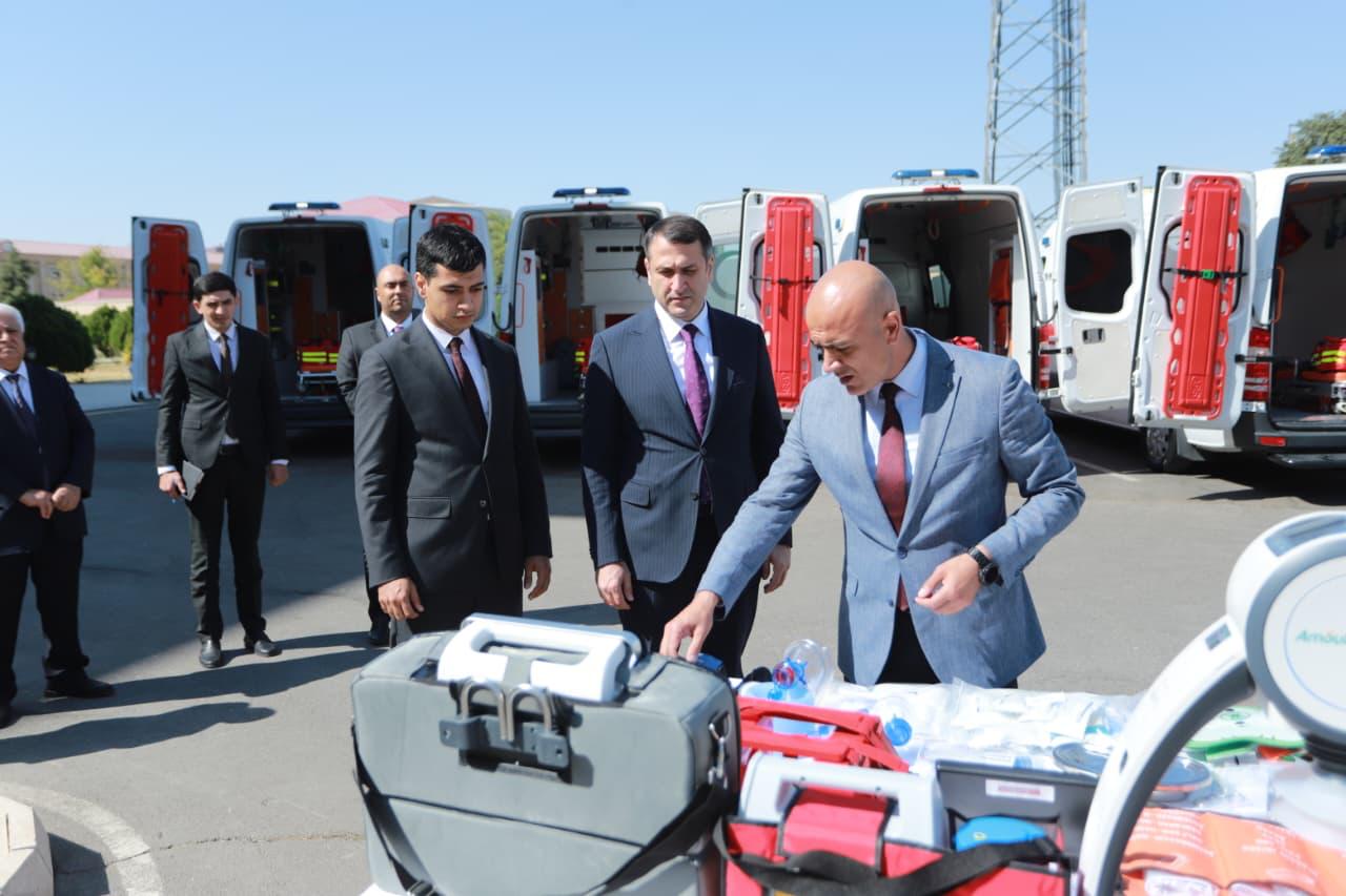 Yeni avadanlıqlar və zəruri tibbi ləvazimatların alınması üçün dövlə büdcəsindən ayrılmış vəsait hesabına ümumilikdə 22 adda avadanlıq və ləvazimat təmin edilmişdir. Alınan avadanlıqlar arasında süni tənəffüs cihazları, portativ aspiratorlar, ambulans üçün portativ aspiratorlar, baş üçün immobilizasiya yastıqları, boyunluqlar, pnevmatik şinalar dəsti, səyyar təzyiq ölçən cihazlar, stasionar təzyiq ölçən, tam təchizatlı təcili tibbi yardım çantaları, yanıq dəstləri, təcili doğum dəstləri, torakal drenaj seti, diaqnostik dəst, defibrilyatorlar və digər zəruri tibbi ləvazimatlar yer alır.