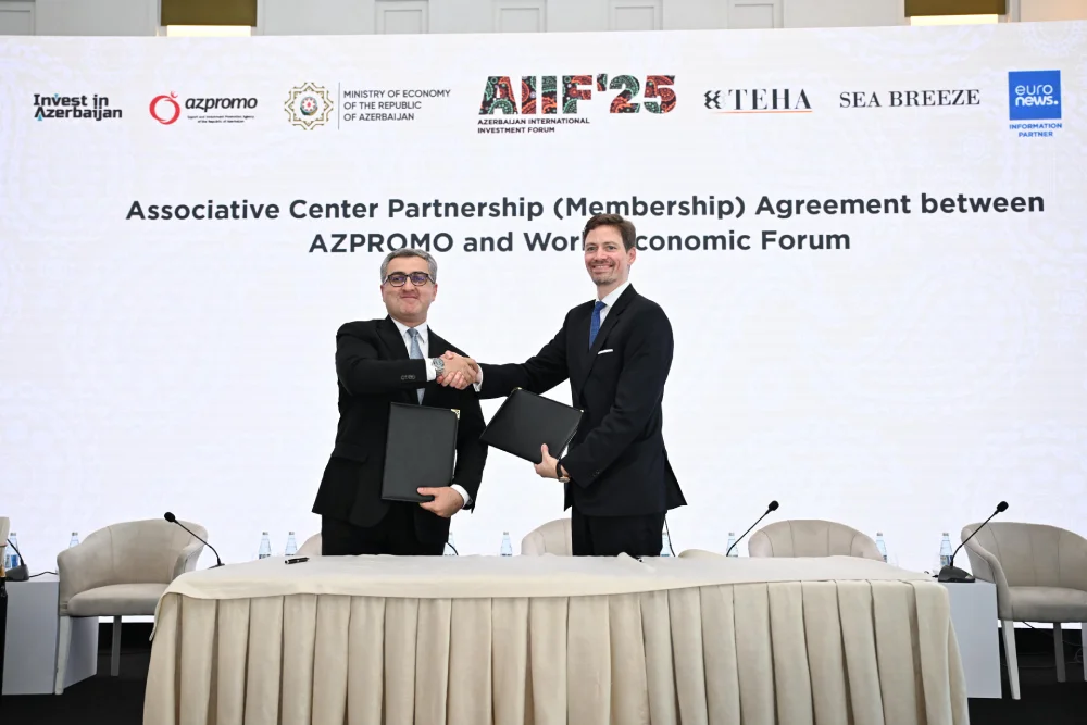 Dünya İqtisadi Forumu ilə Azərbaycan Respublikasının İxracın və İnvestisiyaların Təşviqi Agentliyi – AZPROMO arasında Assosiativ Mərkəz Tərəfdaşlığı (Üzvlük) Müqaviləsi imzalanıb. Müqaviləni AZPROMO-nun icraçı direktoru Yusif Abdullayev və Dünya İqtisadi Forumunun beynəlxalq ticarət və investisiya siyasəti və icmalar üzrə rəhbəri Metyu Stivenson imzalayıblar.
