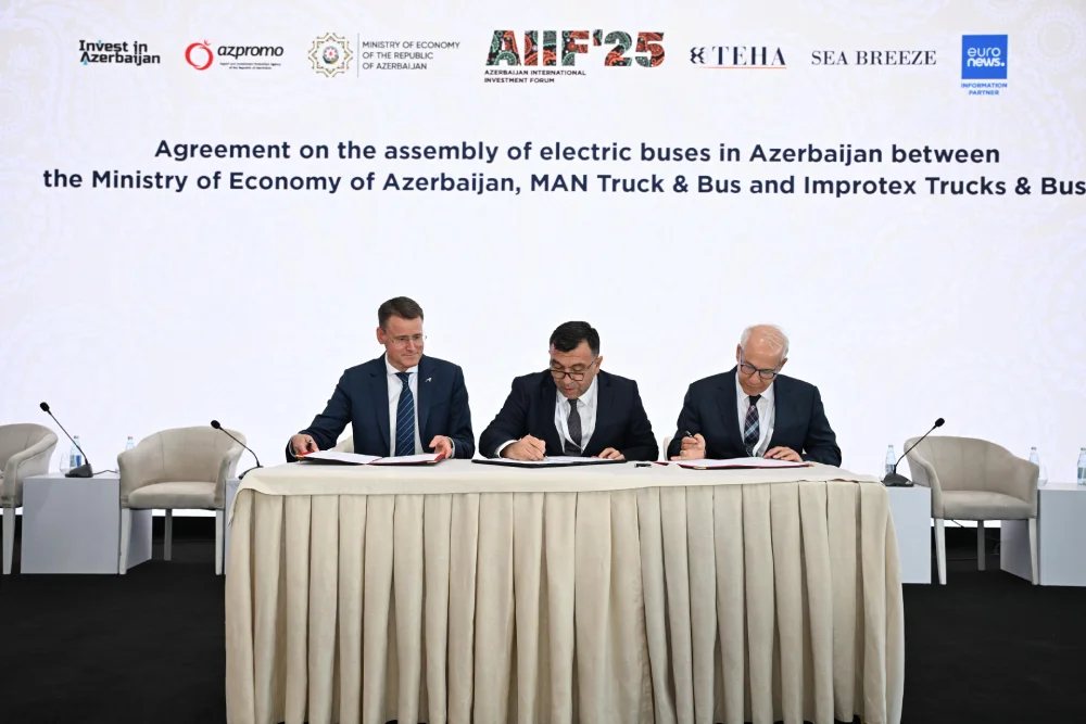Azərbaycanda elektrik avtobuslarının. yığılması üzrə Müqavilə imzalanıbAzərbaycan Respublikasının Prezidenti cənab İlham Əliyevin himayəsi altında Bakıda keçirilən Birinci Azərbaycan Beynəlxalq İnvestisiya Forumu çərçivəsində “Artım, sənayeləşmə və dayanıqlı dəyər zəncirləri üçün tərəfdaşlıqlar: Gələcəyə hazır iqtisadiyyatların qurulması” mövzusunda panel sessiyası keçirilib.