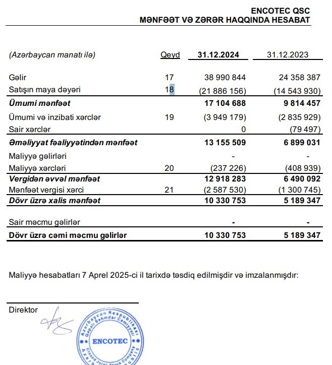 Xəzər regionunda aparıcı mühəndislik şirkətlərindən biri olan "Encodec" QSC 2024-cü ili 10 milyon 331 min manat xalis mənfəət ilə başa vurub. Şirkət 2023-cü ili 5 milyon 189 min manat xalis mənfəət ilə bağlamışdı. Beləliklə, "Encodec" şirkətinin xalis mənfəəti 2023-cü illə müqayisədə 2024-cü ildə təxminən 2 dəfə artıb.