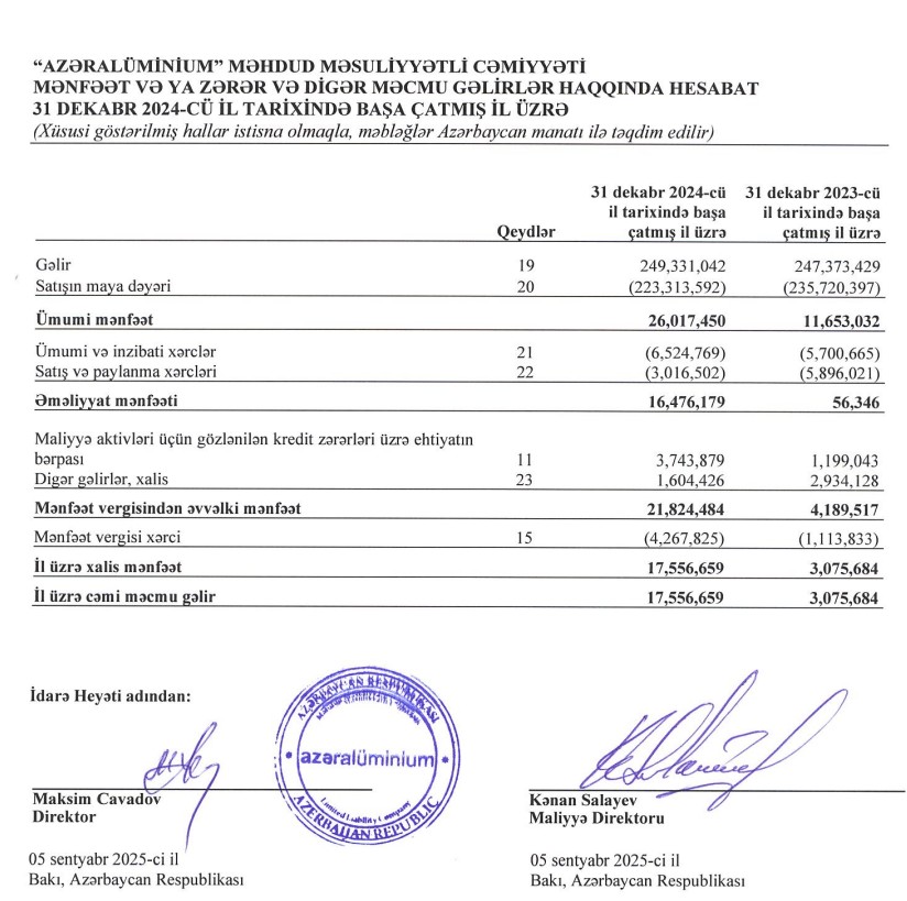 Azərbaycanın alüminium nəhəngi maliyyə göstəricilərini açıqladı - mənfəəti 5,7 dəfə artıb