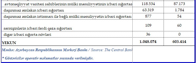 Siniflər üzrə sığorta haqları və sığorta ödənişləri - SİYAHI