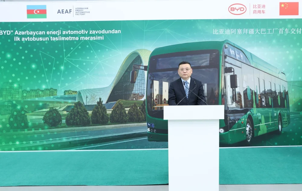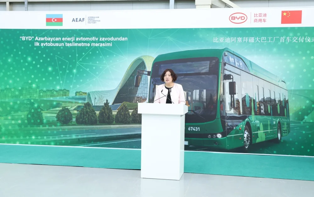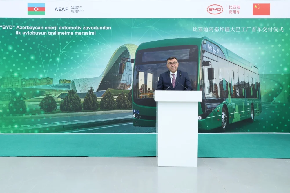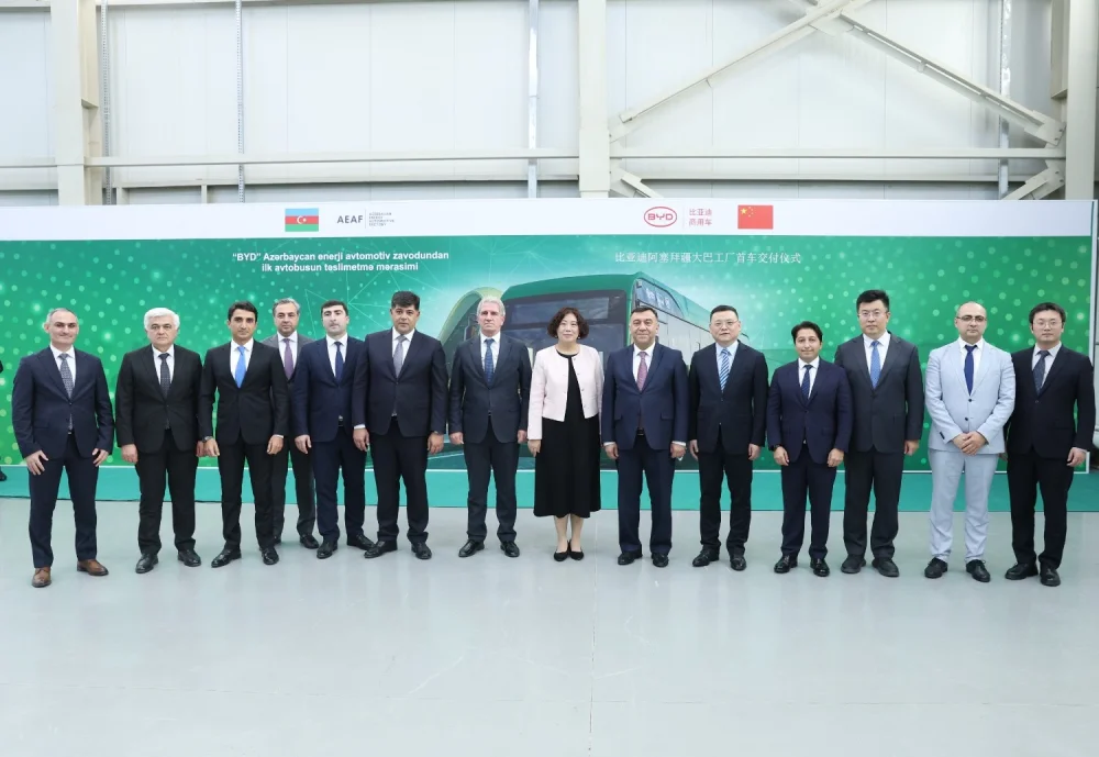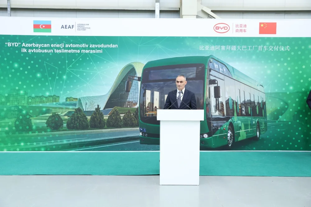 Sumqayıt Sənaye Parkında “BYD” “Azerbaijan Energy Automotive Factory” MMC-nin istehsal etdiyi ilk elektrik avtobusu “BakuBus” MMC-yə təqdim olunub.Artıq Sumqayıt Sənaye Parkında yerləşən “Azerbaijan Energy Automotive Factory”də (AEAF) istehsal prosesinə başlanılıb və artıq ilk avtobuslar SKD üsulu ilə yığımdan çıxıb.